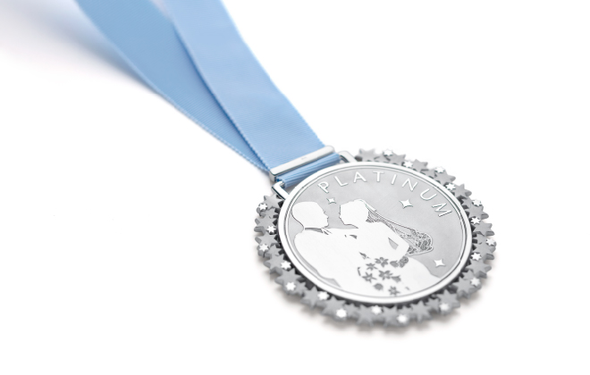 プラチナ・ジュエリーの国際的広報機関プラチナ・ギルド・インターナショナルが、貴金属の最高峰であるプラチナを500 グラム以上も使用して製作した特別な宝飾メダルです。