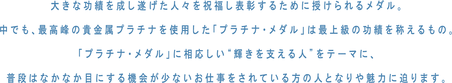 プラチナ・ジュエリーの国際的広報機関プラチナ・ギルド・インターナショナルが、貴金属の最高峰であるプラチナを500 グラム以上も使用して製作した特別な宝飾メダルです。